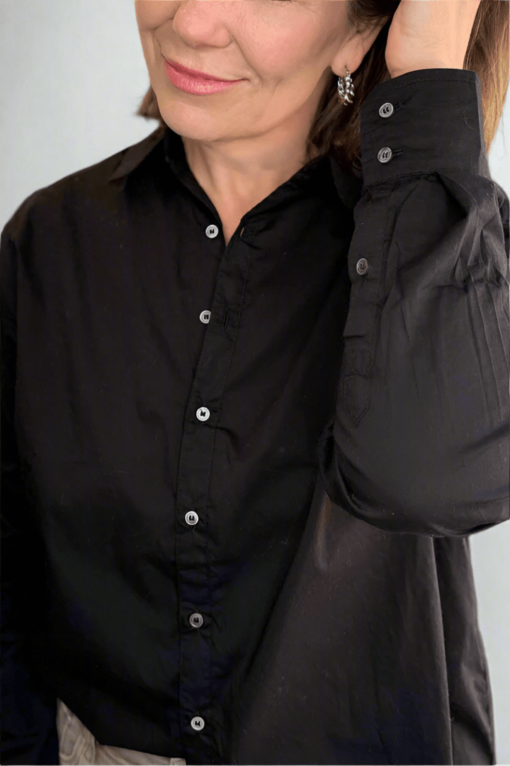Embrace the perfect blend of style and comfort with the Lolita Poplin Shirt. This top is an Essential Piece for Every Wardrobe, offering a sophisticated look without sacrificing ease. Its relaxed fit and soft fabric ensure you feel as good as you look, whether you're powering through a workday or enjoying a leisurely weekend brunch. The timeless design and crisp black color make it a versatile choice that elevates any outfit.