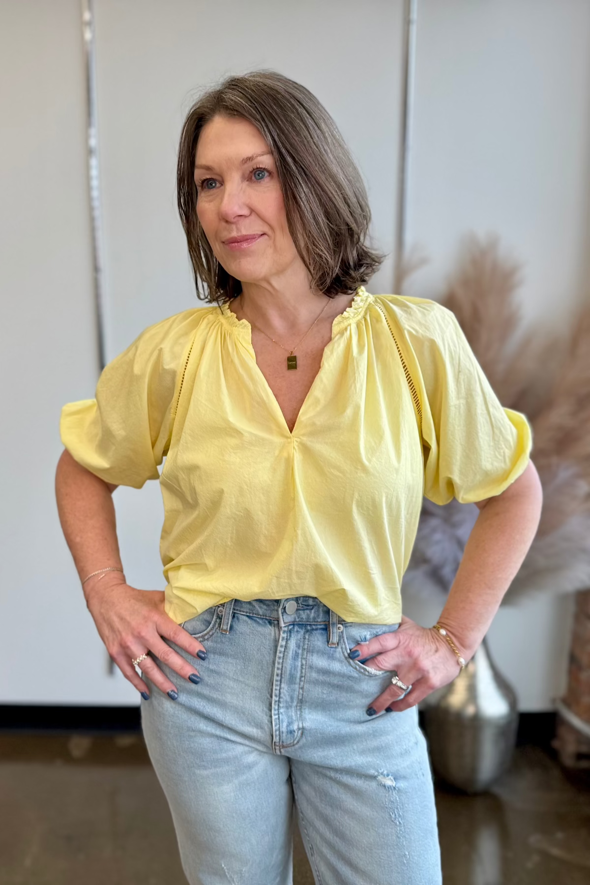 Elevate your everyday style with the Costa V-Neck 3/4 Sleeve Relaxed Fit Blouse in Pale Banana by Dear John Denim. This blouse radiates a serene charm, perfect for those who appreciate a blend of simplicity and sophistication in their wardrobe. Its relaxed fit and soft, pale banana color make it an exquisite choice for any occasion, enhancing your presence with a gentle, inviting aura.