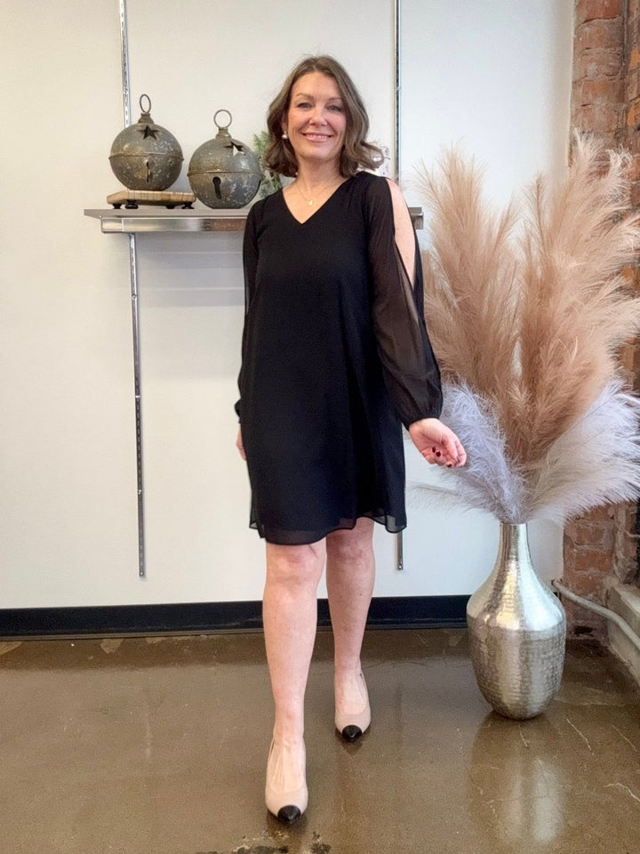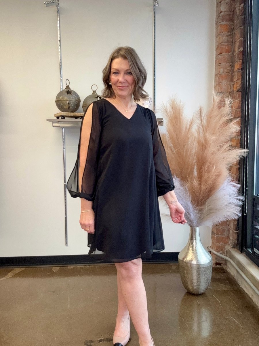 Discover Elegance with the Chiffon Balloon Sleeve V-Neck Dress