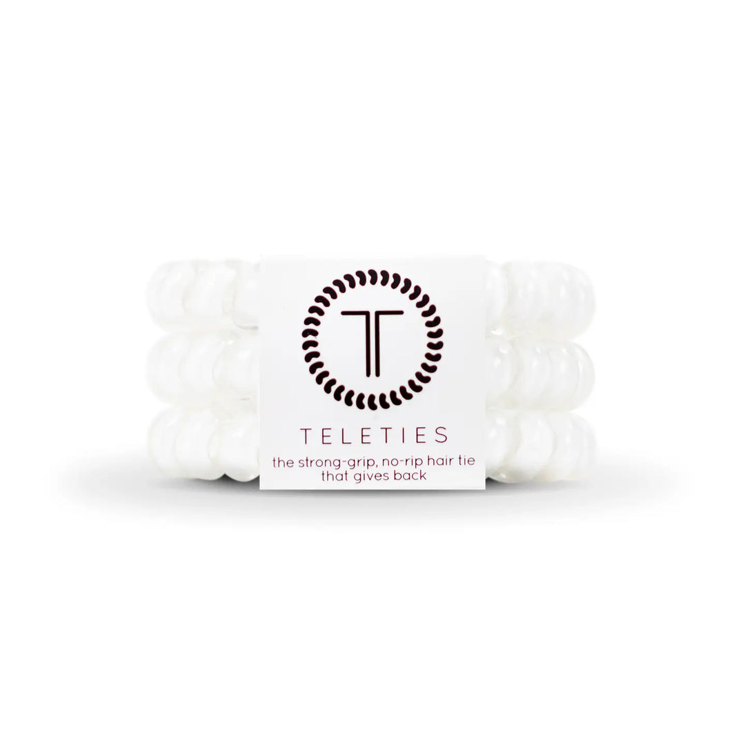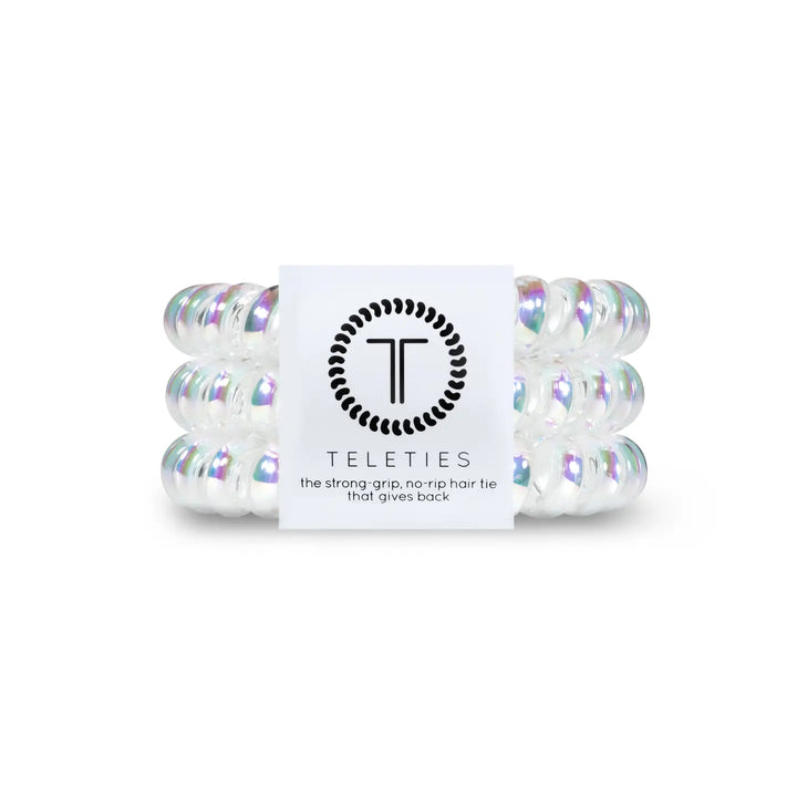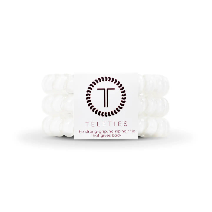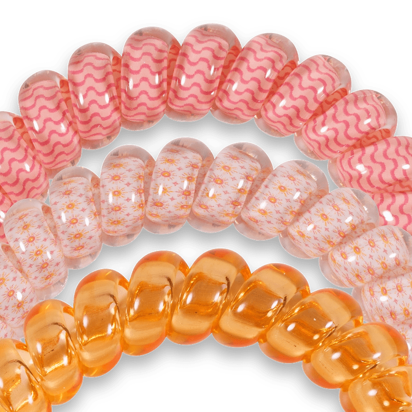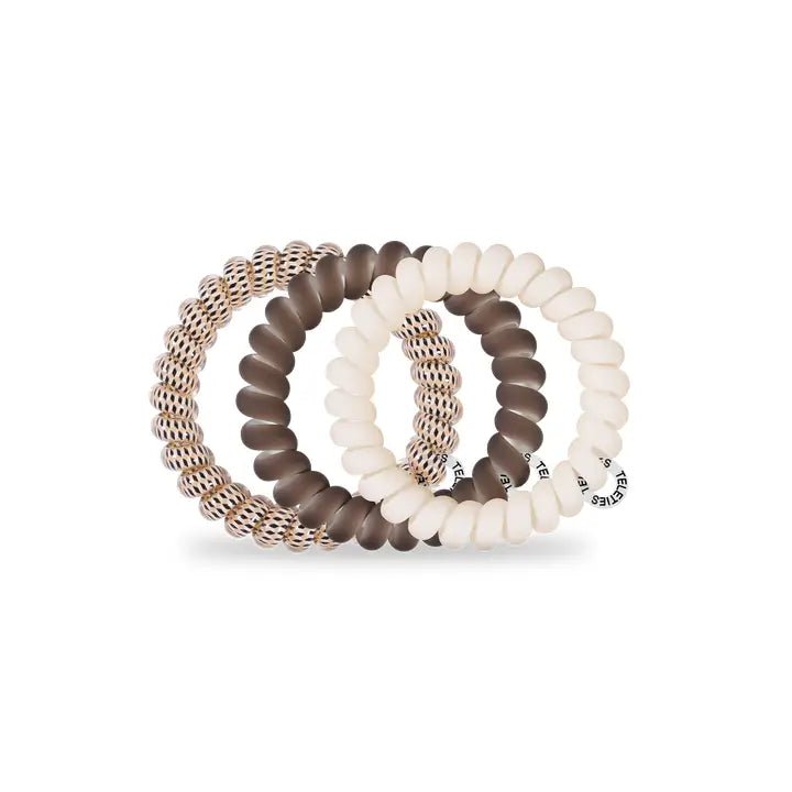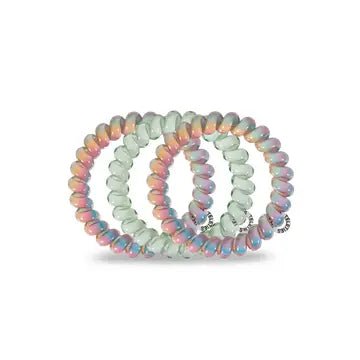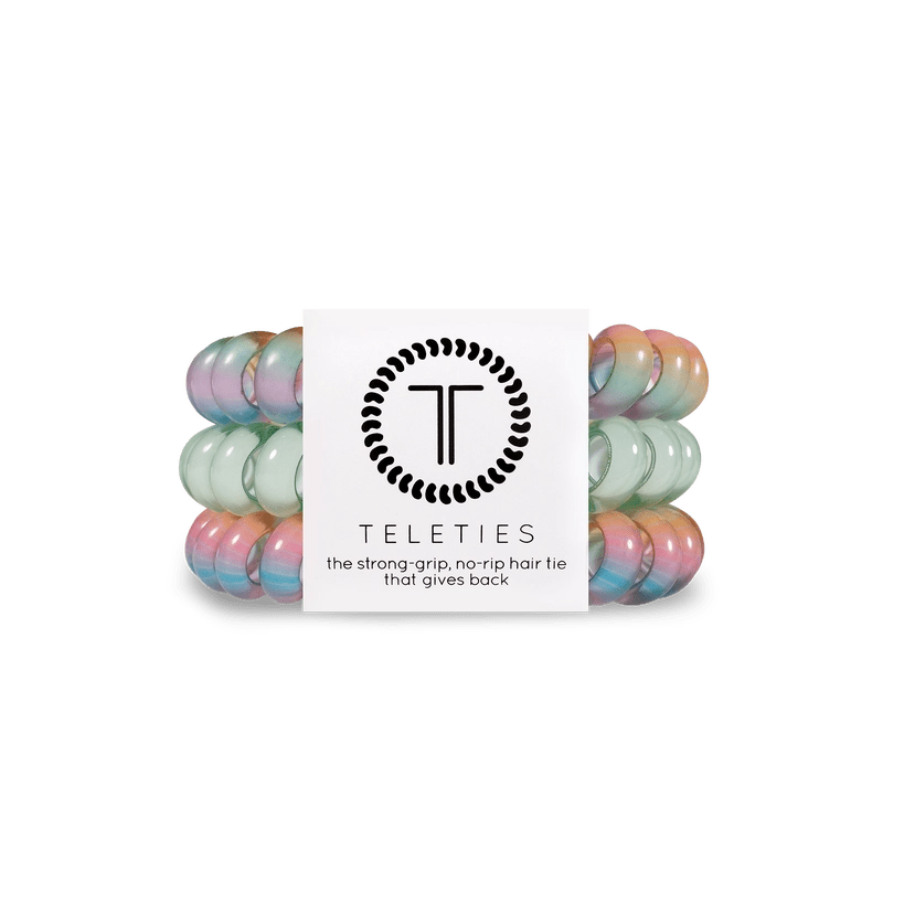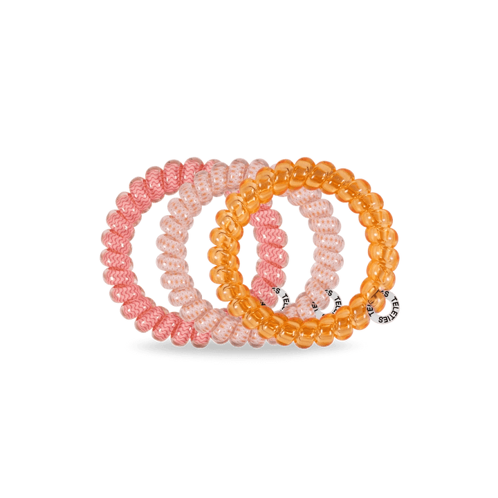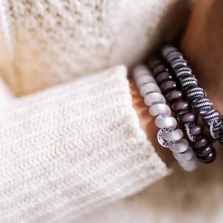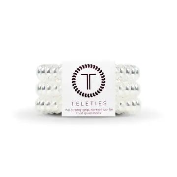 Experience the difference with Hair Ties by Teleties. Made from durable, waterproof material, these hair ties stretch to accommodate any hair type, from fine to thick, while maintaining a strong hold. Their unique spiral design prevents hair from getting tangled or creased, making them a healthier alternative for your hair. Plus, they double as a chic bracelet when not in use, ensuring you're always ready to style your hair on the go.