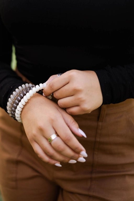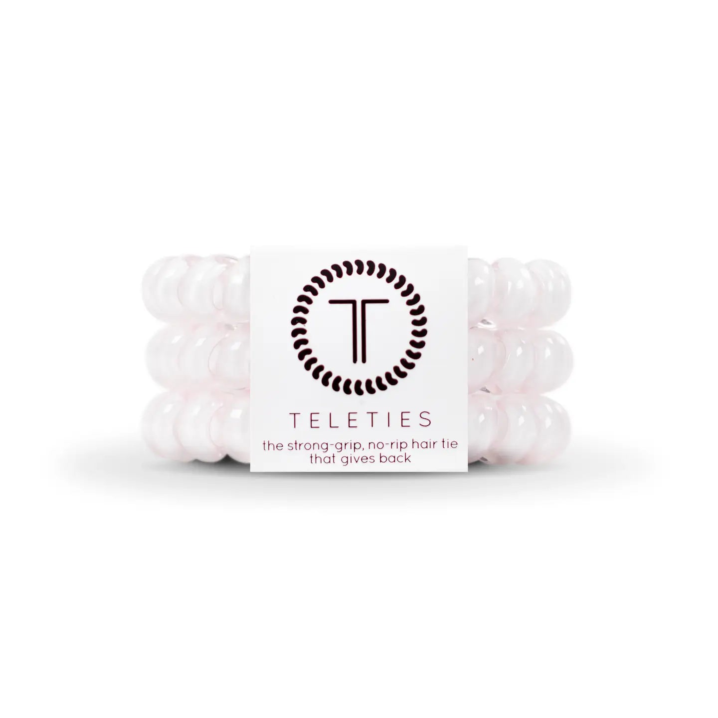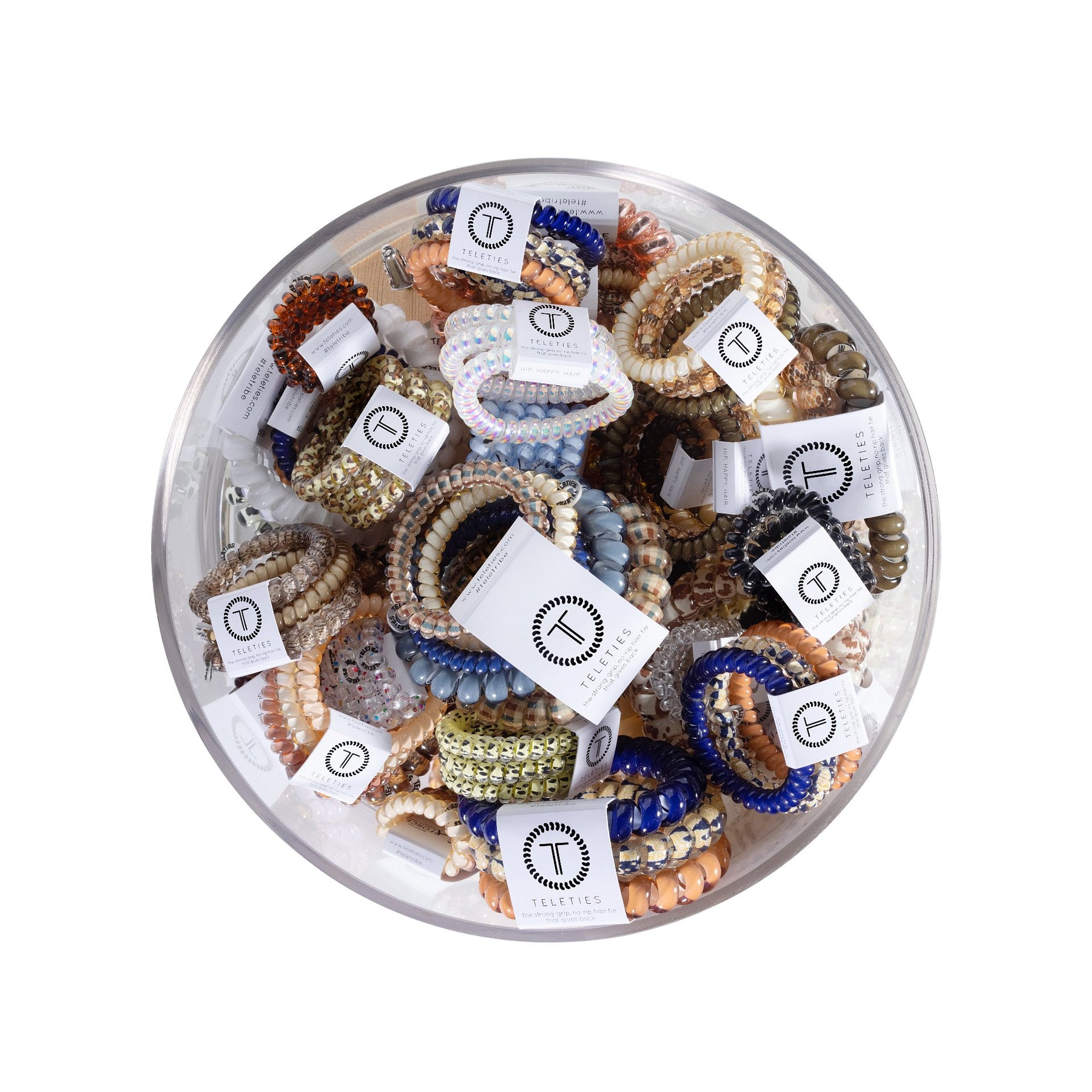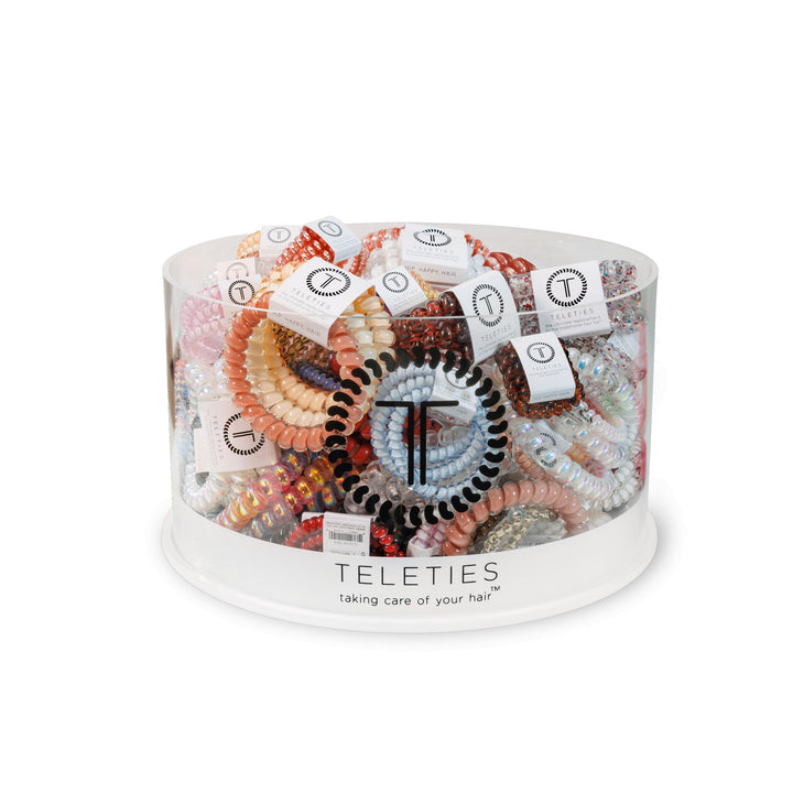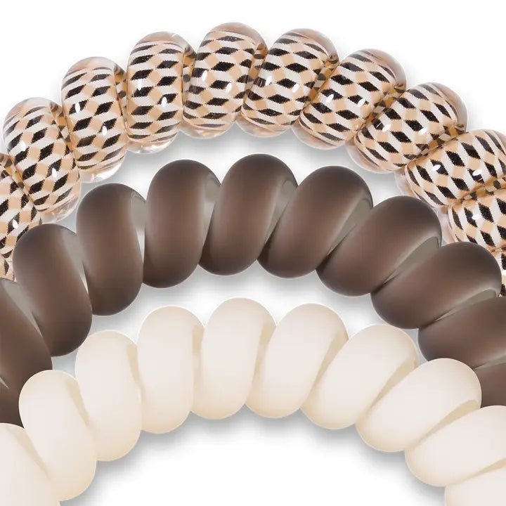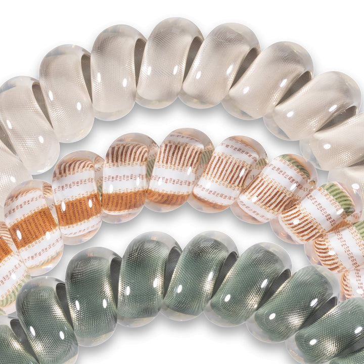 Experience the difference with Hair Ties by Teleties. Made from durable, waterproof material, these hair ties stretch to accommodate any hair type, from fine to thick, while maintaining a strong hold. Their unique spiral design prevents hair from getting tangled or creased, making them a healthier alternative for your hair. Plus, they double as a chic bracelet when not in use, ensuring you're always ready to style your hair on the go.