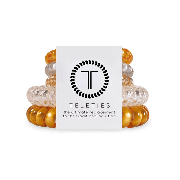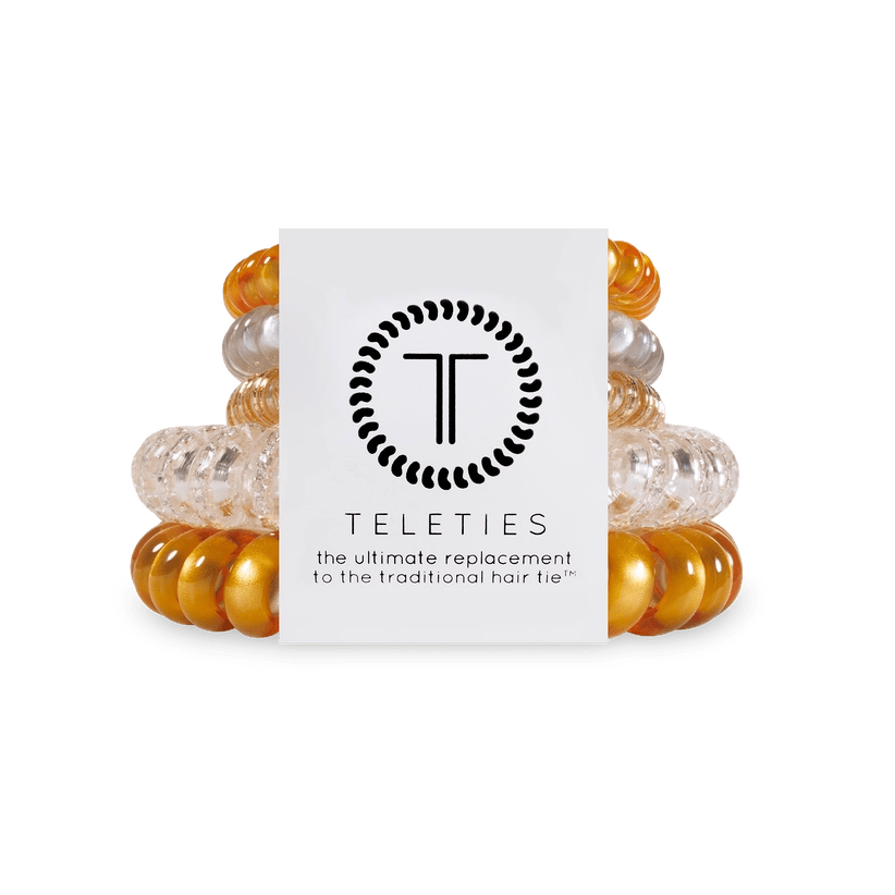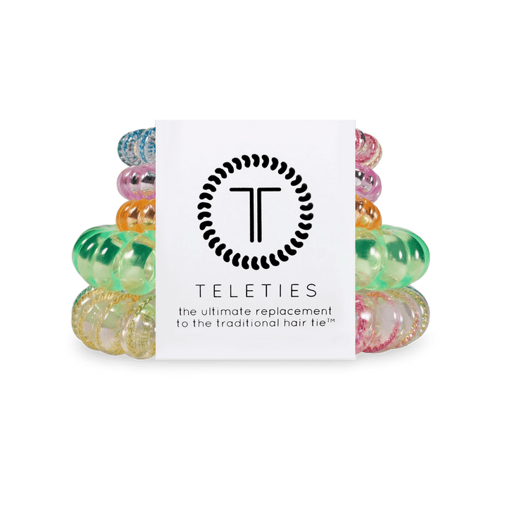 Designed to prevent breakage and discomfort, TELETIES offer a sleek solution to traditional hair ties. This five-pack includes 3 smalls and 2 larges, perfect for every hair type and activity.