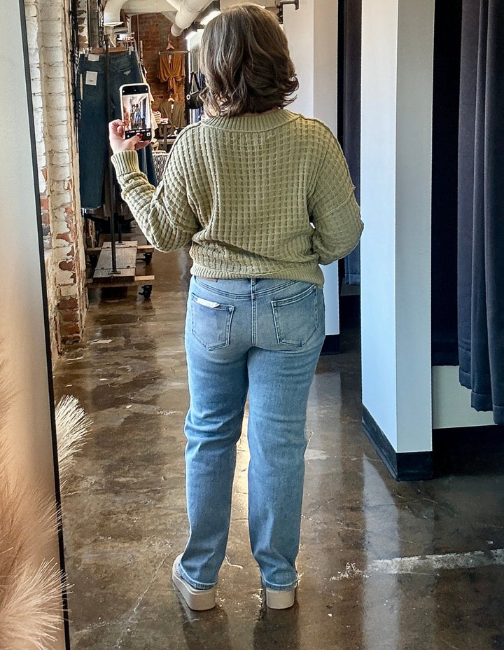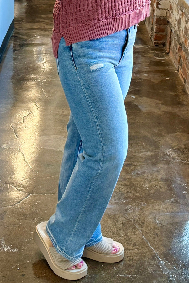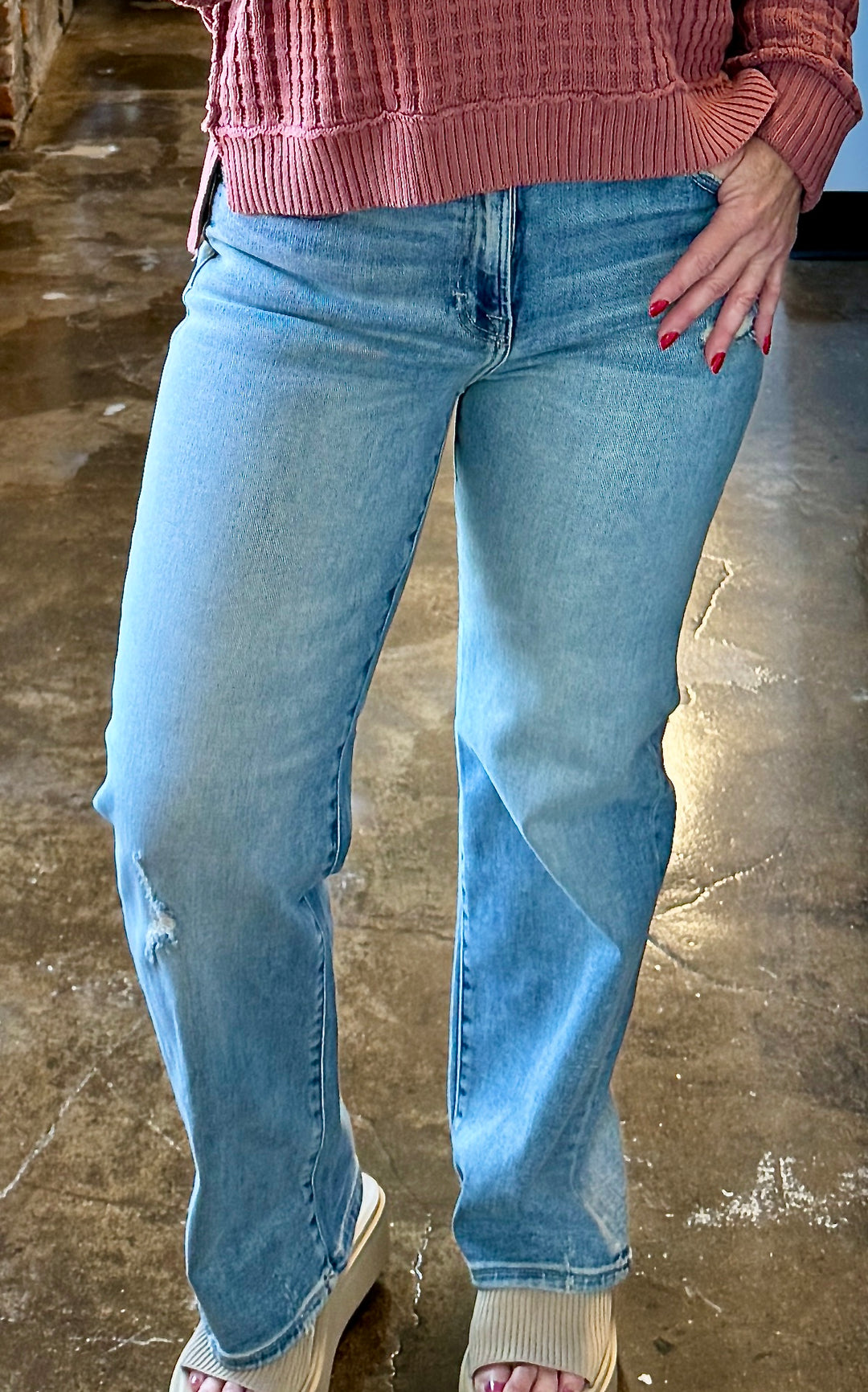 Step into effortless style and comfort with our Light Wash Straight Leg Jeans. Whether you're heading out for a casual day or meeting up with friends, these jeans will give you the confidence to conquer any occasion. The soft fabric and perfect fit will have you feeling comfortable all day long, while the sleek, straight-leg cut flatters your silhouette. You'll not only look great but feel unstoppable in these versatile jeans.