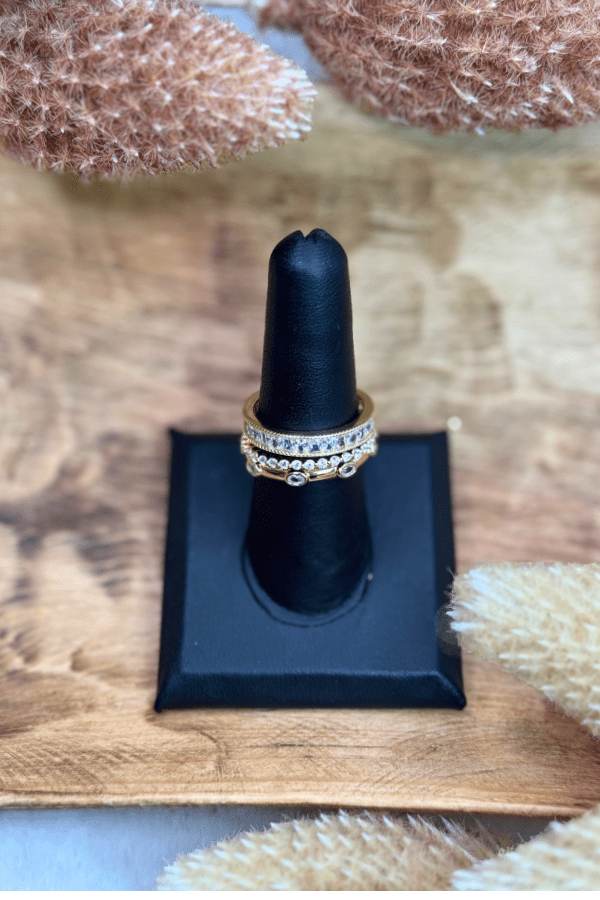 Slip on the Ivy CZ Stackable Ring Set and instantly feel more confident, polished, and put together. Whether you’re heading to the office or out for dinner, this shimmering trio of rings catches the light just right and brings effortless sophistication to any look. Designed to be worn together or separately, the versatility of this set gives you endless ways to express your personal style. Add this gold CZ ring set for women to your collection and shine a little brighter every day.