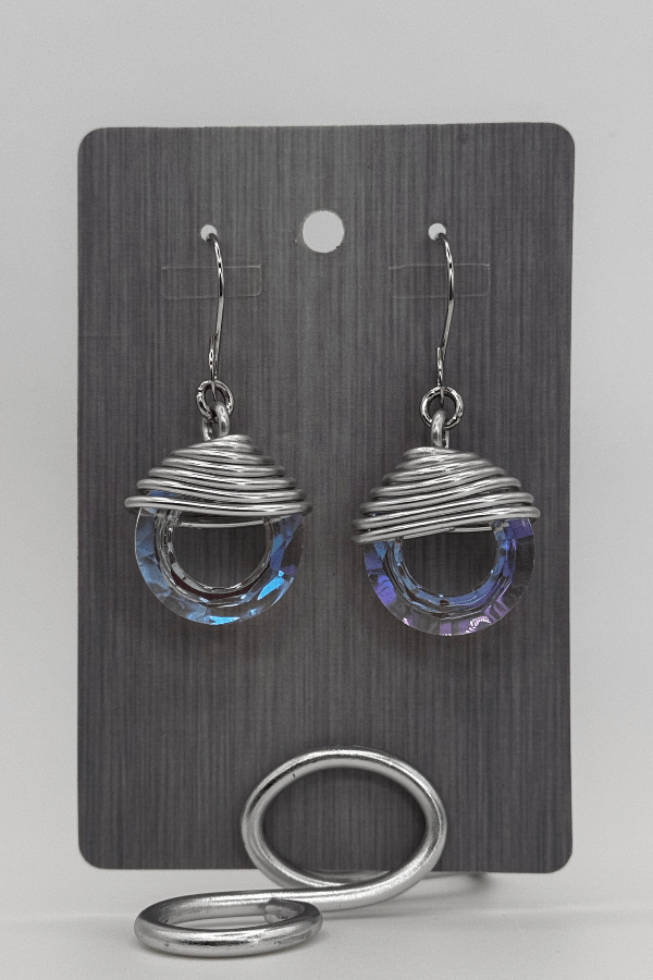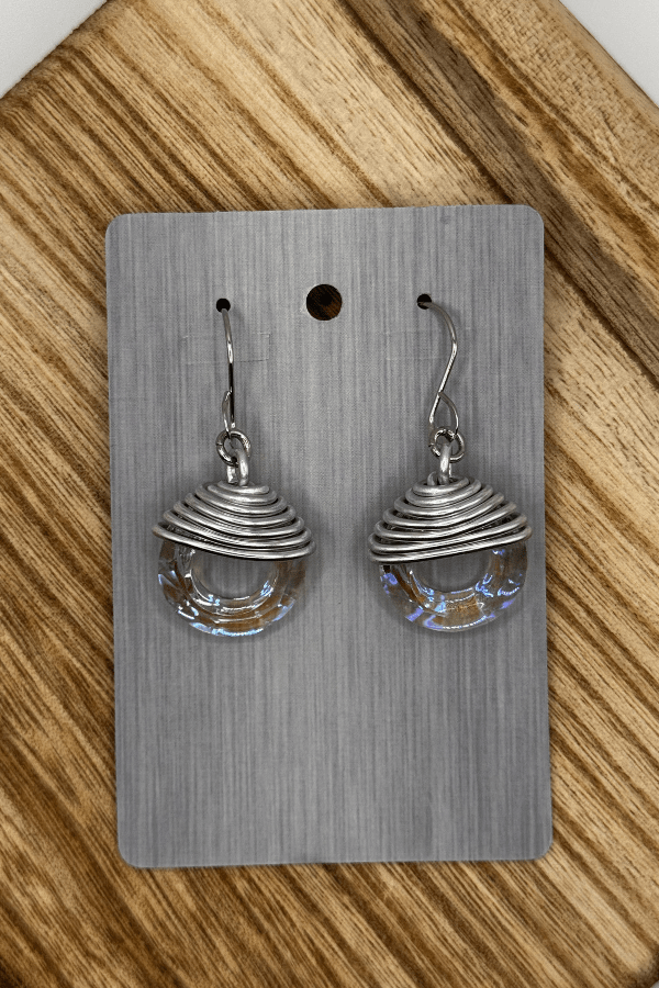 Crystal drop earrings for women are trending for a reason—they're versatile, impactful, and easy to pair with any outfit. The Meg Ann Earrings feature a stunning iridescent crystal ring, wrapped in silver wire for a handcrafted finish. Proudly made in the USA, this design brings artisan charm and high-shine style into one simple piece.