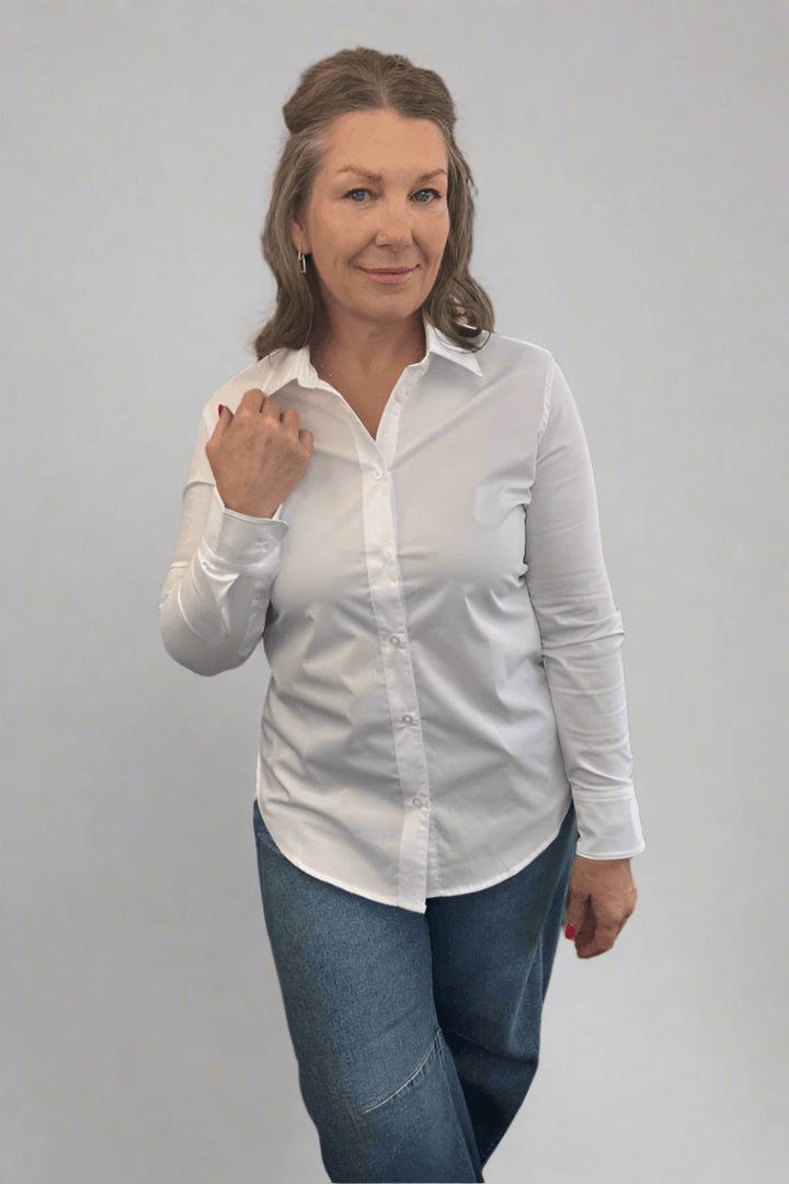 Button down shirts for women offer timeless style with modern comfort. This one features long sleeves with button cuffs, classic inserts for structure, and a breathable cotton-blend poplin fabrication. The tailored fit and soft stretch make it ideal for layering or wearing solo, season after season.