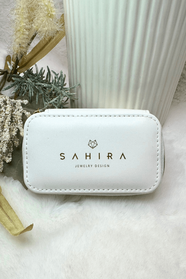 Created by Sahira Jewelry, this travel box is designed with thoughtful compartments that accommodate rings, earrings, necklaces, and more. Its lightweight structure and sleek design make it a must-have for anyone seeking a compact jewelry storage case that’s both functional and fashionable.