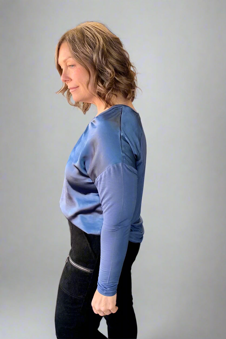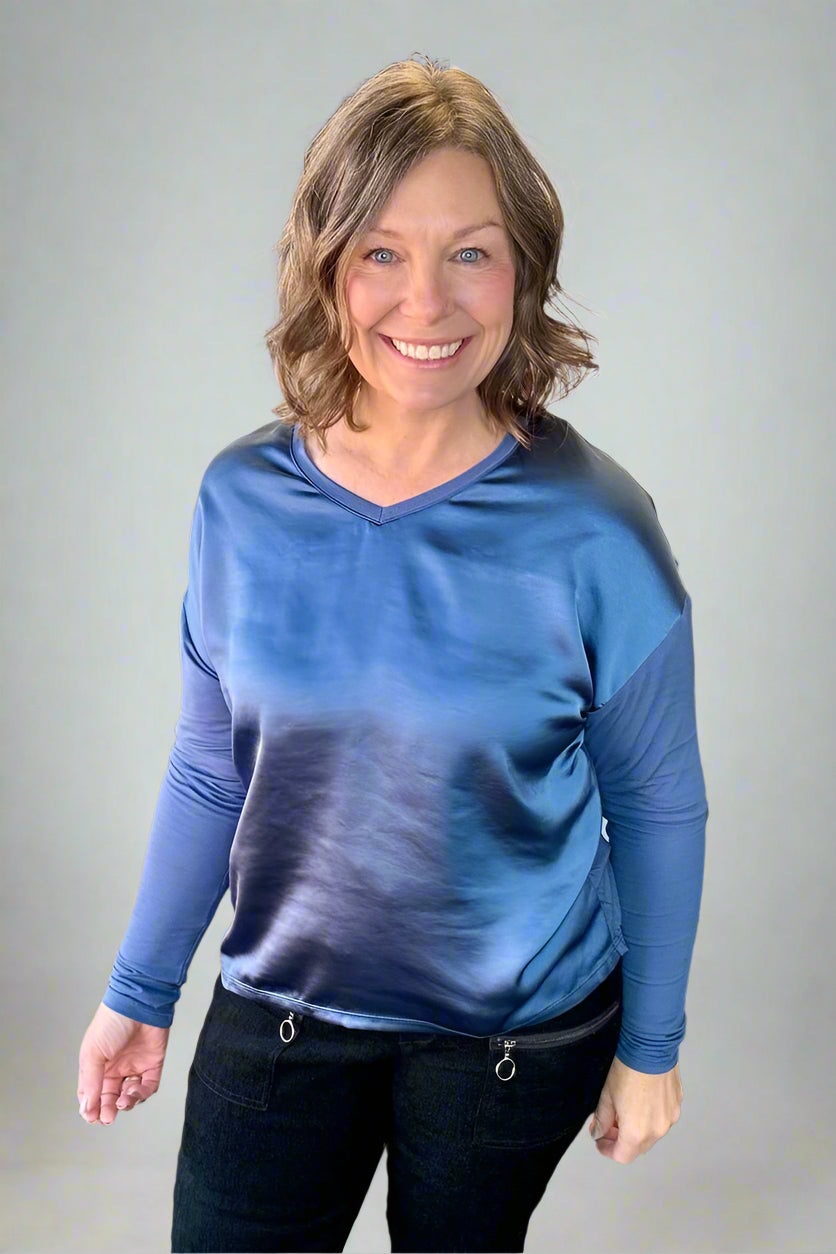 Feel Luxurious in a Satin Jersey V-Neck Knit Top