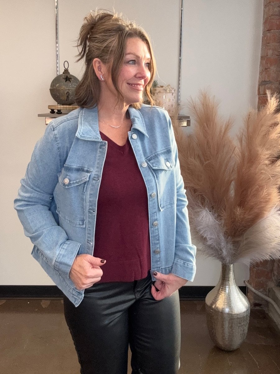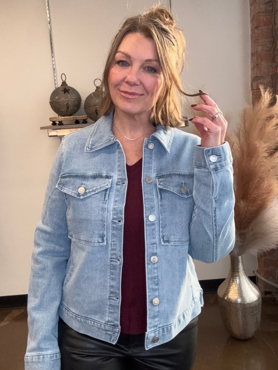 Embrace timeless style and unmatched comfort with our Stretch Denim Jacket with Pockets. Perfect for layering over your favorite outfits, this jacket adds a touch of casual elegance that enhances any look. Feel the freedom of movement and the secure comfort of stretch denim, allowing you to navigate your day with ease and confidence.