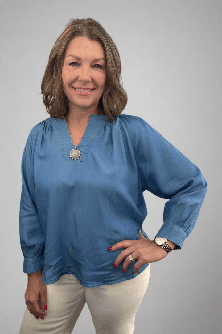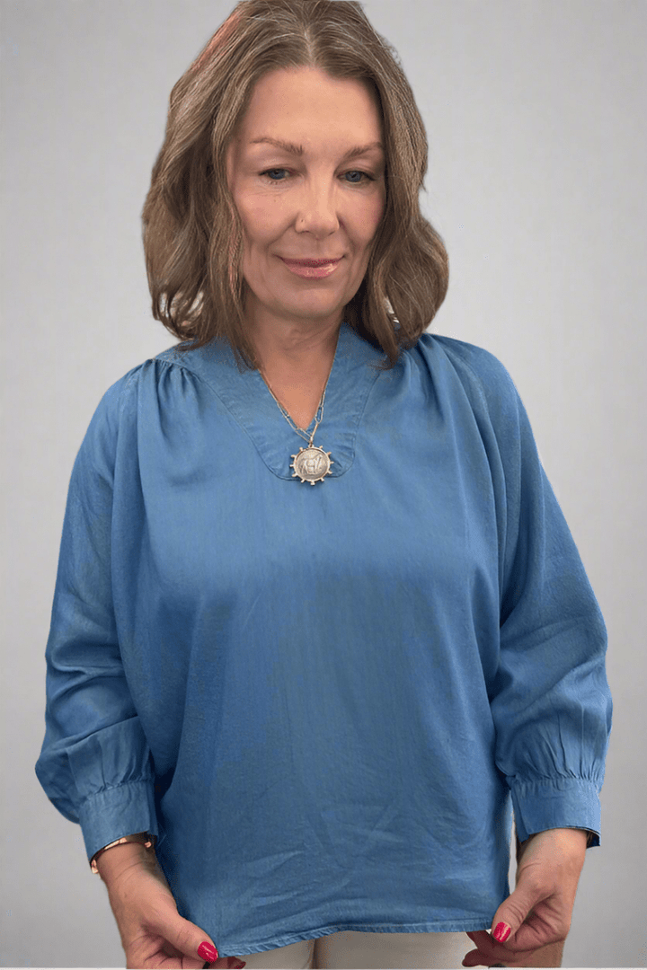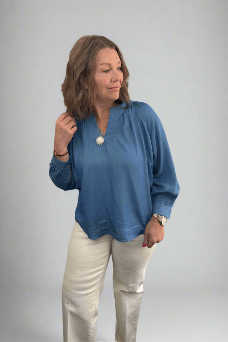 Sometimes all it takes is one perfect blouse to make your day feel a little more polished. This Tencel balloon sleeve blouse is designed to drape gracefully with a flowy, relaxed silhouette that feels as soft as it looks. The breathable lyocell fabric keeps you cool and comfortable, while the V-notch neckline and ¾ cuffed balloon sleeves add just the right amount of detail to make it stand out. Whether you're dressing it up for work or pairing it with denim for the weekend, this top blends simplicity with sophistication.