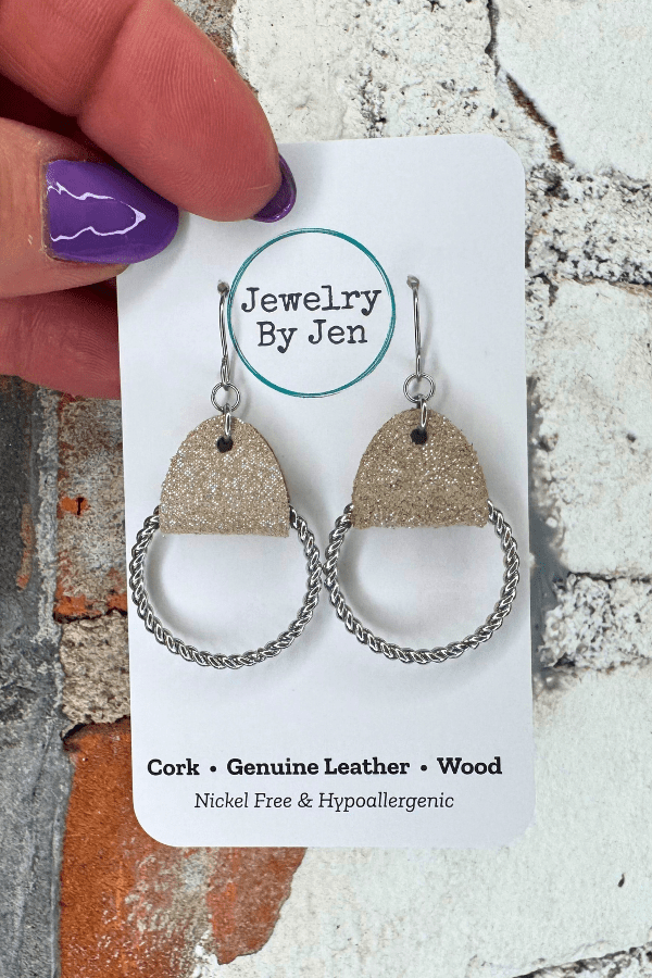 Jewelry by Jen wraps genuine cream-tone leather around polished stainless-steel hoops, securing each 1.50-inch drop with a nickel-free, hypoallergenic hook that loves sensitive skin. Bold yet feather-light, they prove that small details make the biggest impact in nickel free hypoallergenic earrings.