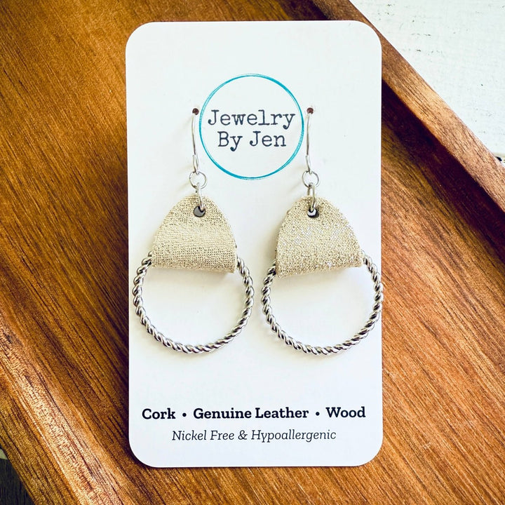 Genuine Cream Dazzle leather twisted on durable stainless-steel hoops