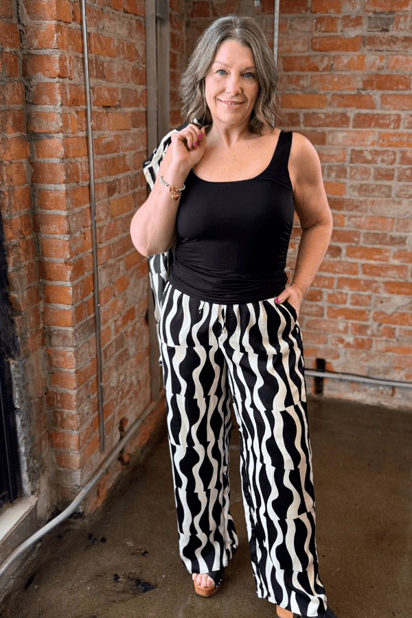 Transform your style with our Wave Pattern Satin Pants, where elegance meets comfort. These high-waist, wide-leg pants are a blend of sophistication and modern flair, perfect for adding a dash of artistic style to your wardrobe. The unique wave print is not only eye-catching but also versatile, making these pants suitable for a variety of occasions, from a day at the office to an evening out. Embrace the Trend of Satin Elegance with this standout garment that promises to elevate your look effortlessly.