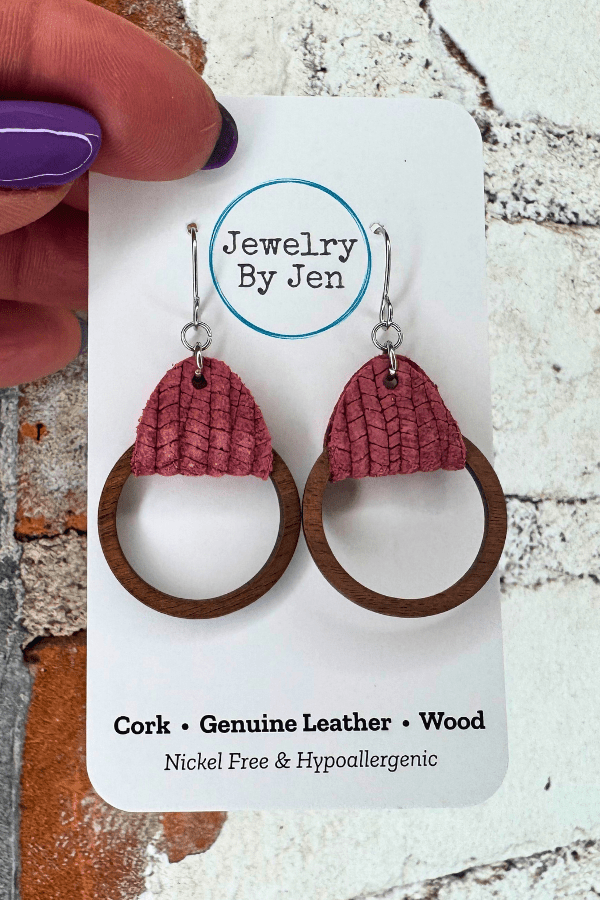 Breathe in beachy ease each time you slip on the Coral Palm Wood Hoop Earrings. Lightweight wooden circles wrapped in genuine coral-hued leather flutter just below your lobes, capturing sunlit shimmer and turning every breeze into a compliment. Close your eyes—you can almost hear the waves while these playful accents lift your spirit and brighten any outfit. Beach-ready style comes alive with leather wood hoop earrings.